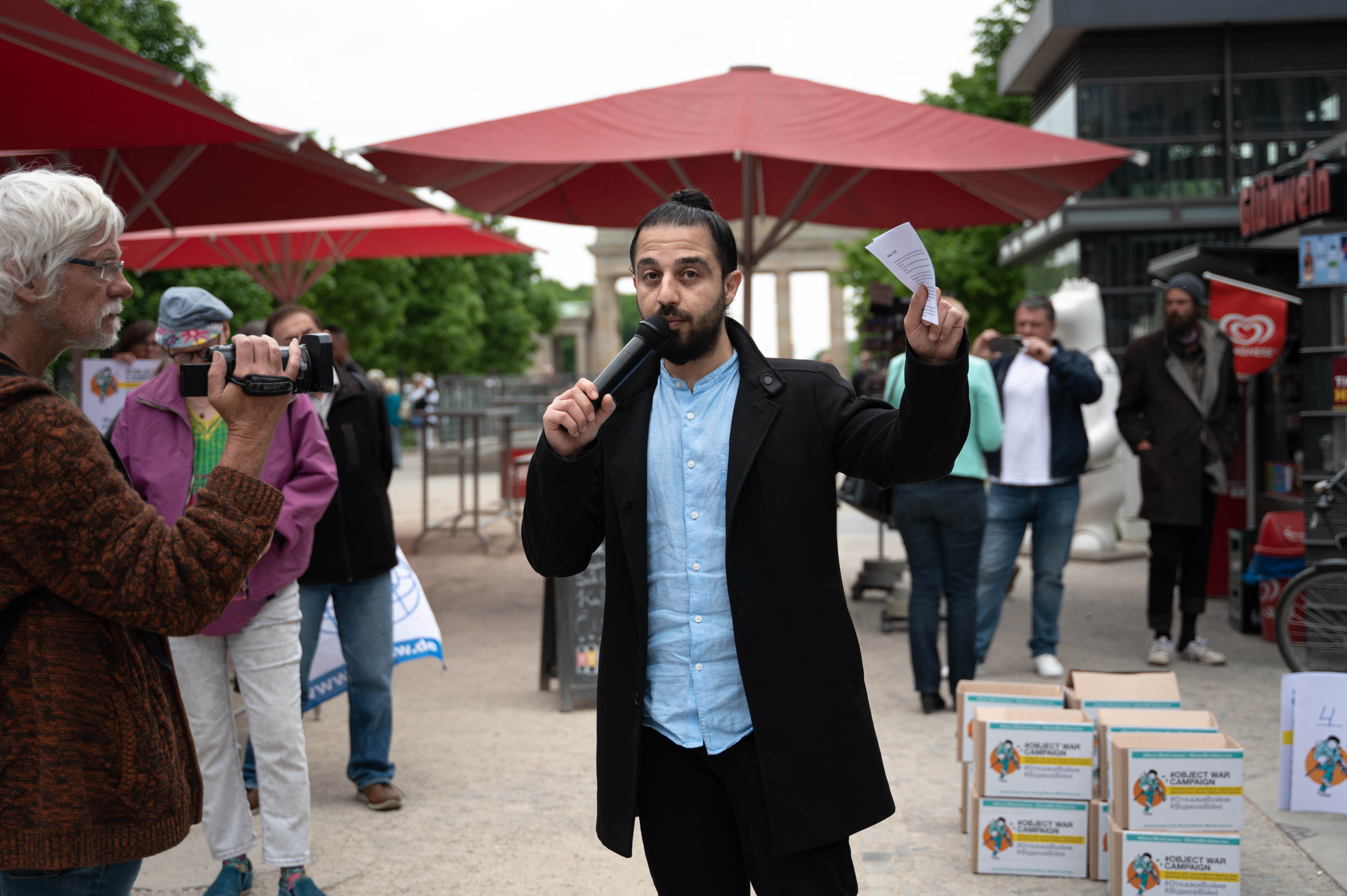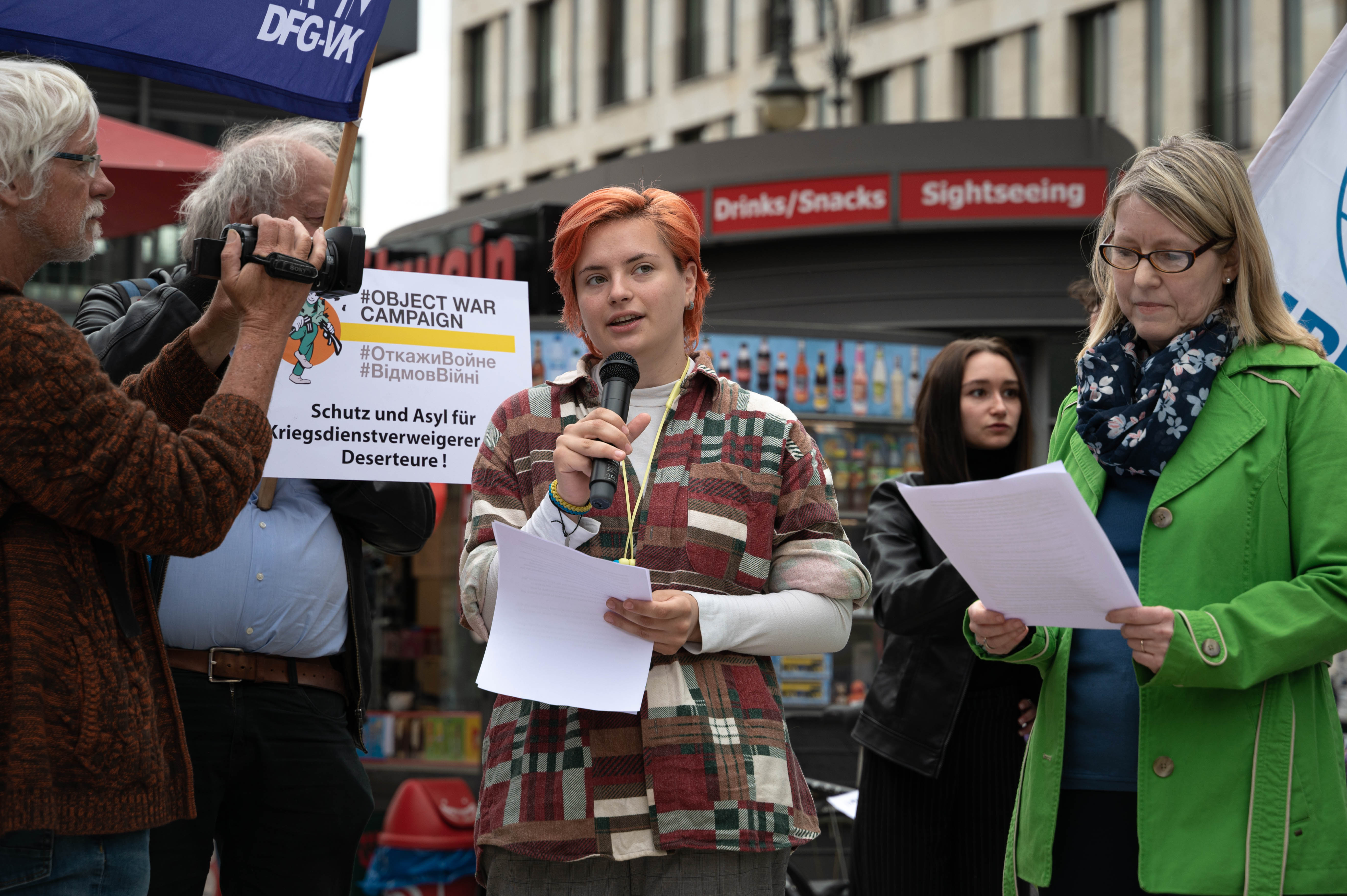 Gestern war Internationaler Tag der Kriegsdienstverweigerung. Deshalb waren wir vormittags bei Haus der EU, Unter den Linden, und haben mit 30 Organisationen aus ganz Europa zum Schutz für all diejenigen aufgerufen, die in Russland, Belarus und der Ukraine den Kriegsdienst verweigern. Während der feierlichen Aktion wurden fast 50.000 Unterschriften der #ObjectWarCampaign an die Europäische Kommission in Berlin übergeben. Begleitet wurde die Übergabe der Petition von Redebeiträgen nationaler und internationaler Gäste aus Russland, Belarus und der Ukraine, weiteren Aktionen und Musik. Und abends haben wir eine sehr informative Podiumsdiskussion veranstaltet. Ein kleiner Einblick: