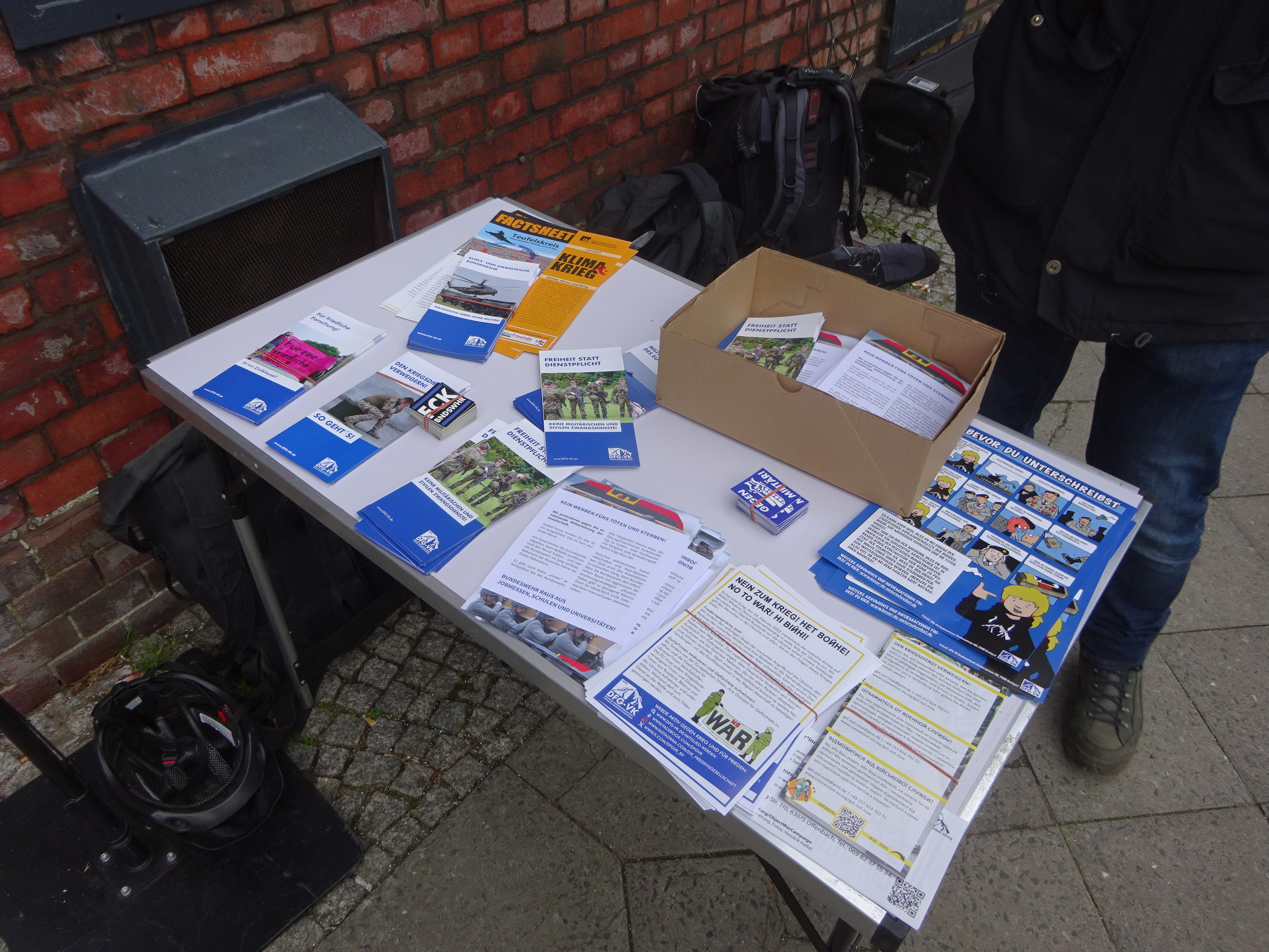 Auch die Besucher*innen sind erstaunlich aufgeschlossen. Klar: Es gibt die üblichen Typen (meistens männlich und von sich selbst überaus überzeugt), die das Bedürfnis haben, Menschen mit anderen Meinungen anzupöbeln. Aber das viele positive Feedback in Gesprächen hat deutlich überwogen. Oft war auch im Vorbeigehen zu hören: „Bundeswehr? Auf keinen Fall!“ oder „Gut, dass ihr da seid.“