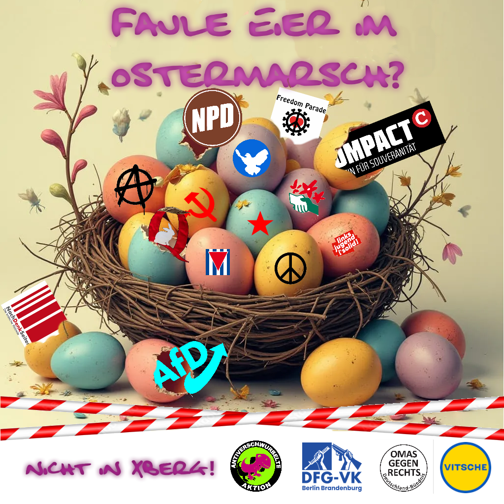 Der Bundesverband der DFG-VK schließt alle Mitglieder des Landesvorstandes Berlin-Brandenburg aus dem Verein aus. Hintergrund ist die Kritik des Landesvorstandes Berlin-Brandenburg an der Teilnahme der DFG-VK an den Demonstrationen des Bündnisses „Gerechter Frieden“. Der Landesverband Berlin-Brandenburg kritisierte, dass das Netzwerk in seinen Aufrufen einseitig Israel die Schuld für den aktuellen Krieg in Nahost gibt und Israel auf antisemitische Weise dämonisiert und delegitimiert. Hier eine Chronologie der Ereignisse.